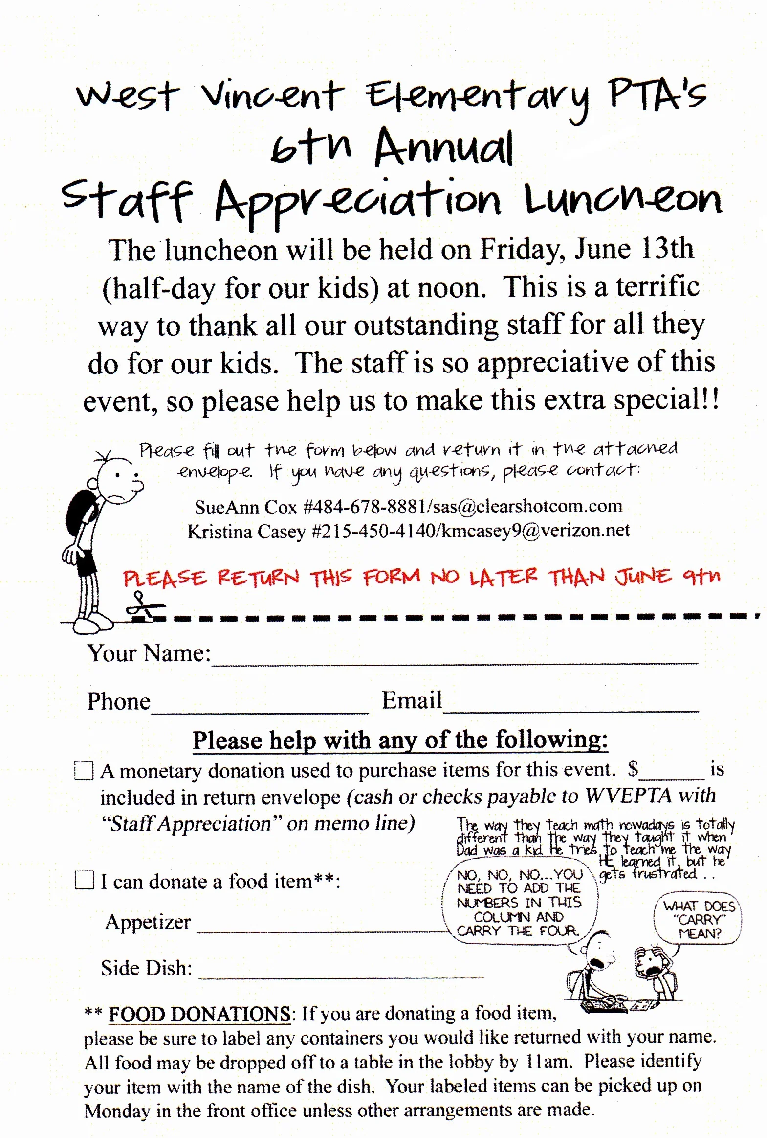 Staff Appreciation Luncheon - Please Consider A Donation PTA Programs May 22 Written By Guest User Staff Appreciation Guest User