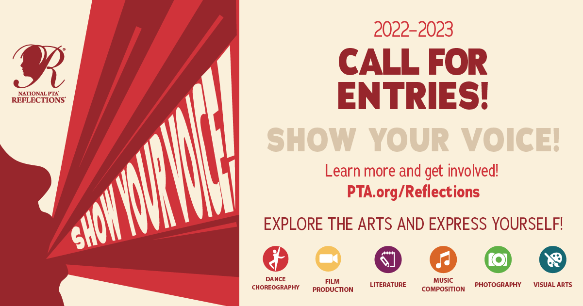 The 2022-2023 Reflections Art Contest is open for entry! Each year, students in grades Pre-K through 12 are recognized for bringing the Reflections theme to life through dance choreography, film production, literature, music composition, photography, and visual arts.